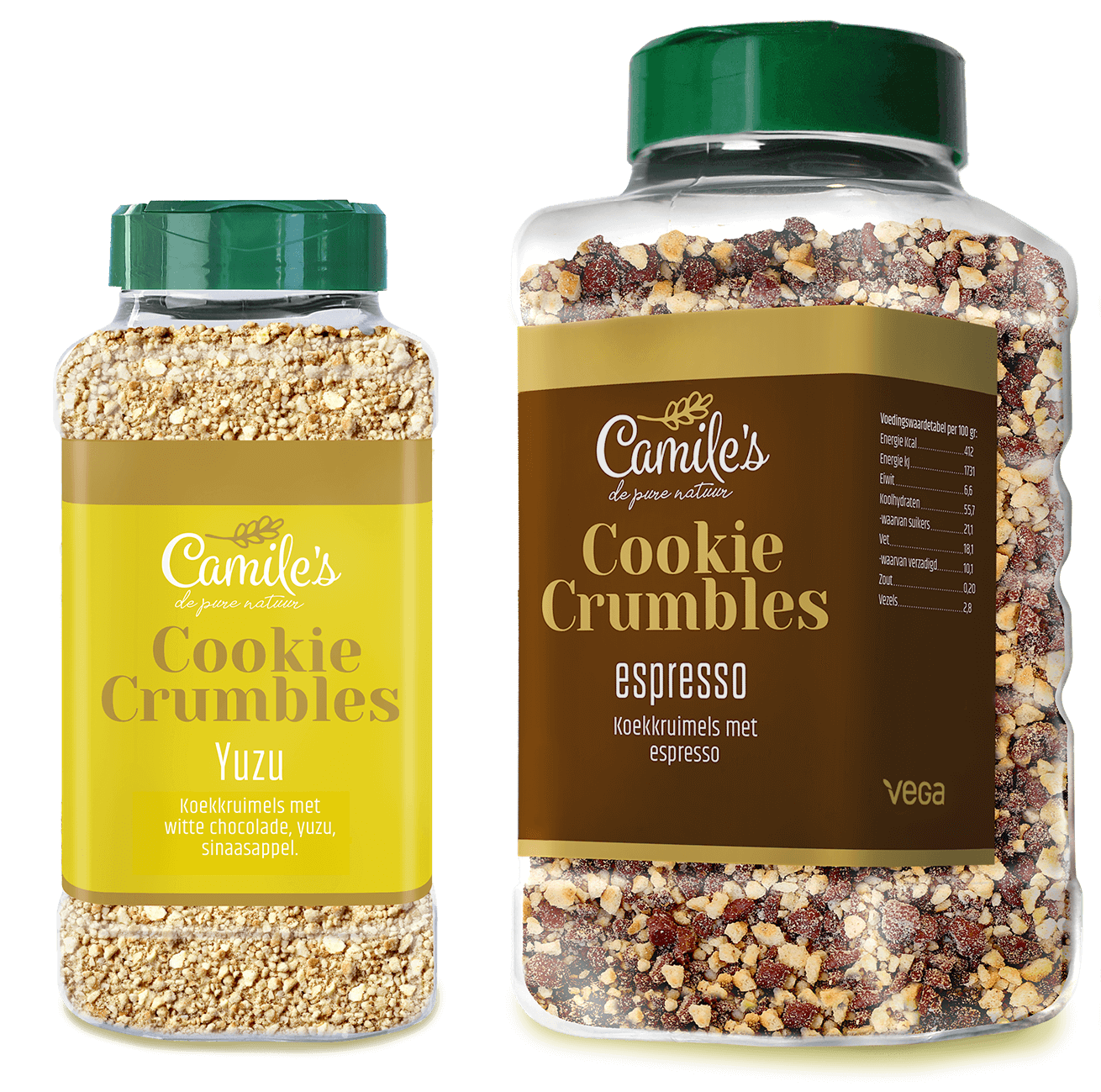 De Cookie Crumbles van Camile’s zijn ideaal als garnering voor ijsdesserts en taartbodems. Bovendien Glutenvrij, Lactosevrij, Vega, en is eindeloos te combineren voor de lekkerste nagerechten.